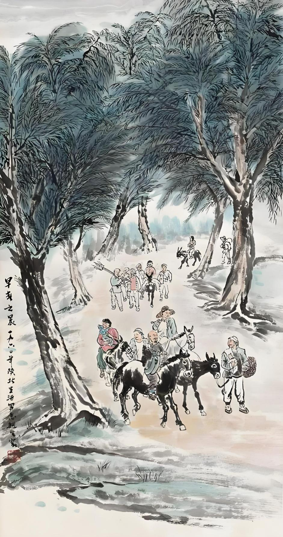 赵季平:那时候我还小,感觉他的画面构图很有空间感,一层一层的,感觉里面有节奏变化,有旋律在里面。他作画的时候,我就趴在旁边看,他总是在记录时代,对自己的祖国充满情感,充满热爱。