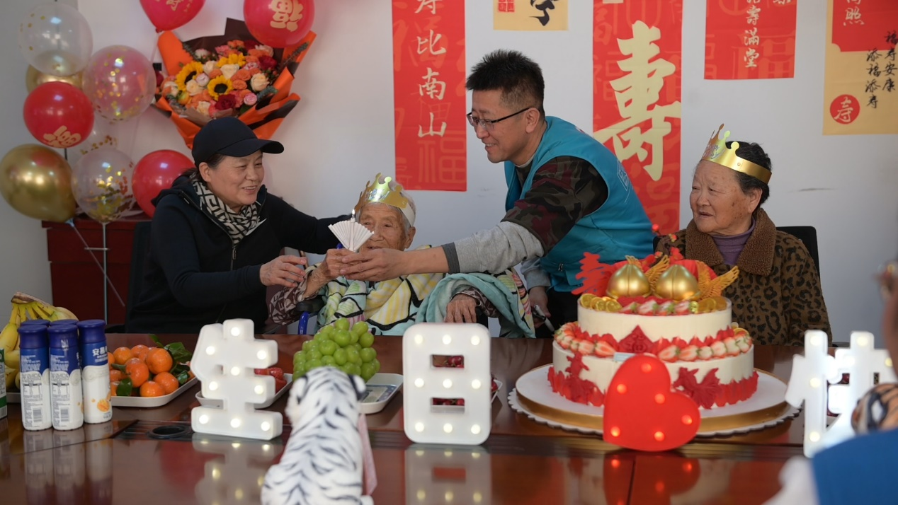 高岭镇社区卫生服务中心医务社工为老年患者过生日(央广网发 受访者供图)
