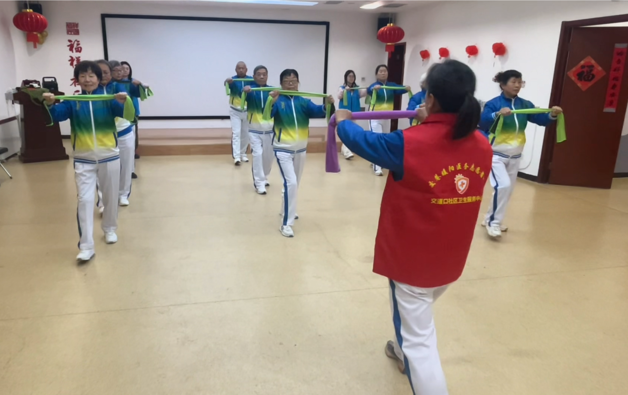 交道口社区卫生服务中心医务社工志愿者向居民传授“毛巾操”(央广网发 受访者供图)