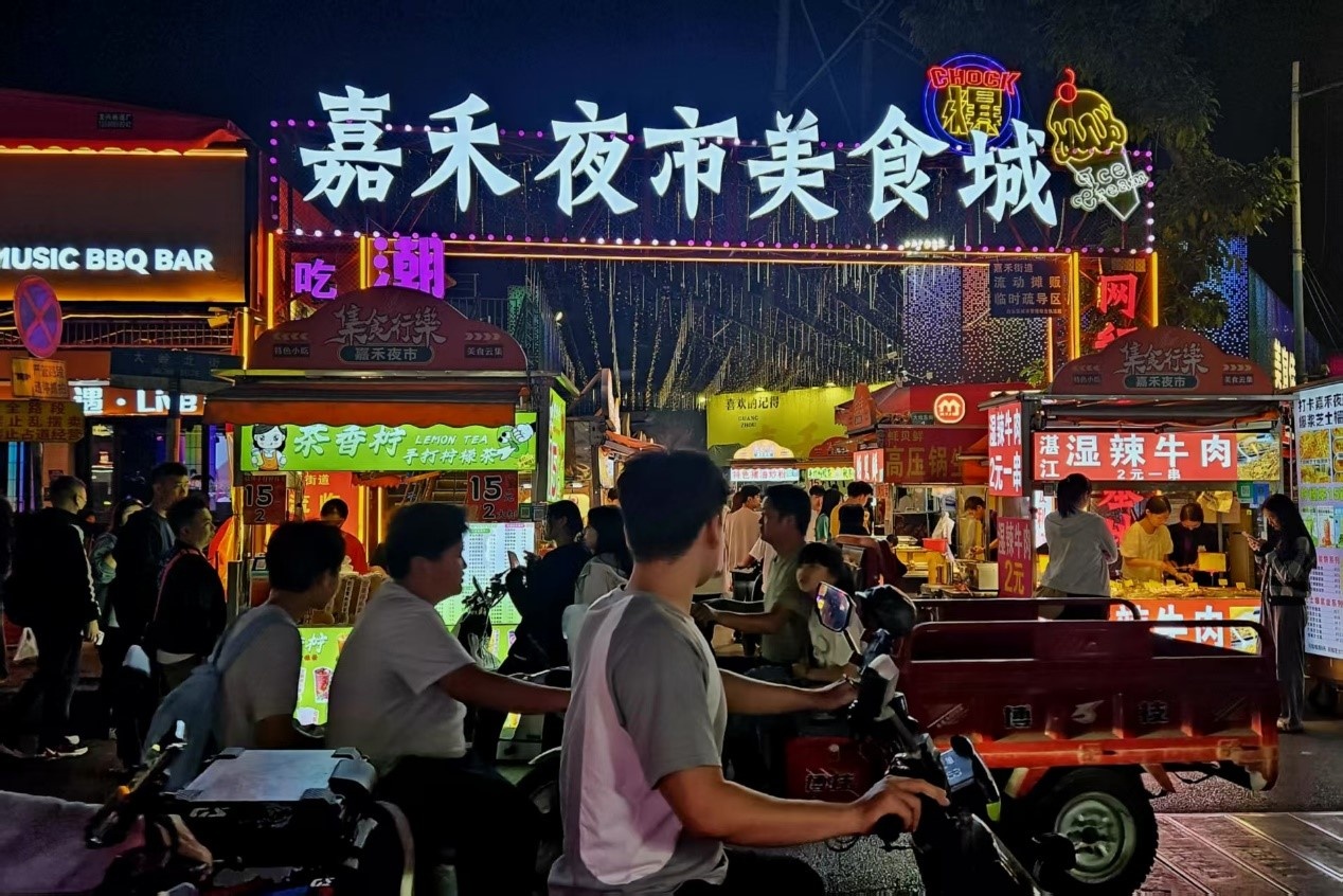 此时,租住在周边的年轻人也陆续从嘉禾望岗站回到出租屋,城中村的街道、夜市、商场迎来一天里最热闹的时段。