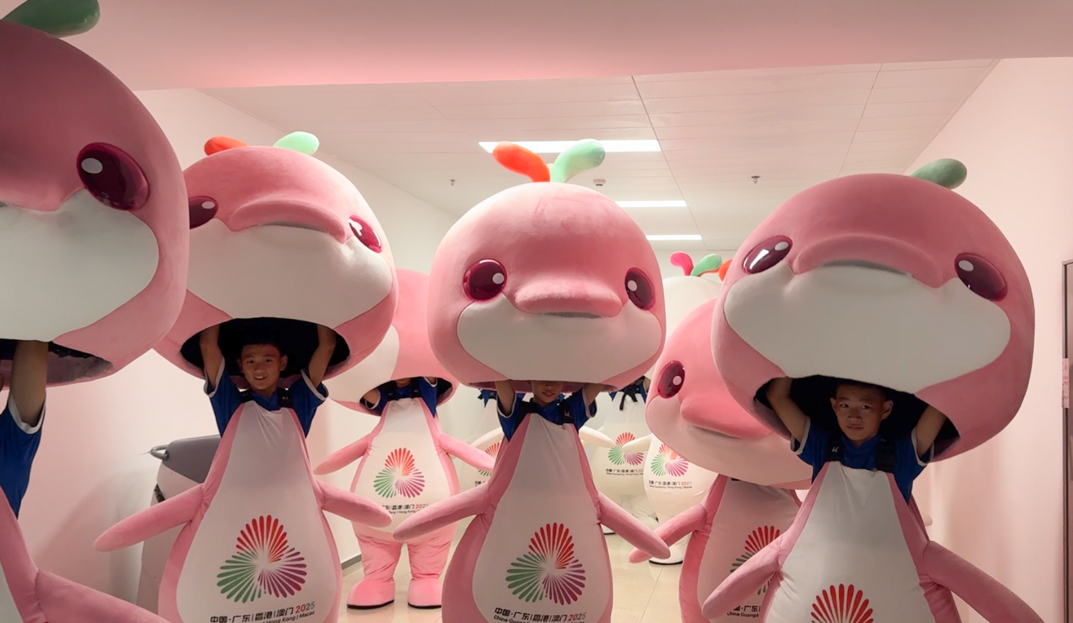帅好瑞说:“大家看到小海豚的‘蘑菇蹲’、亲亲你、踢踢你这种可爱的小动作,都不是我们刻意去教他们做的,而是这些小演员们在结束日常训练之后自己琢磨出来的,他们觉得穿上这套衣服,就有使命去逗大家开心,他们也是发自内心想去做好这件事。”